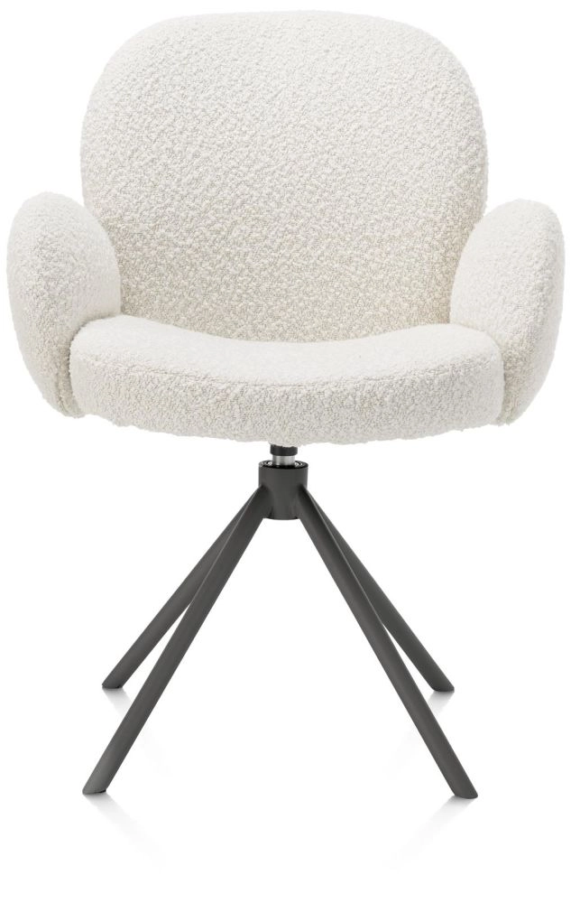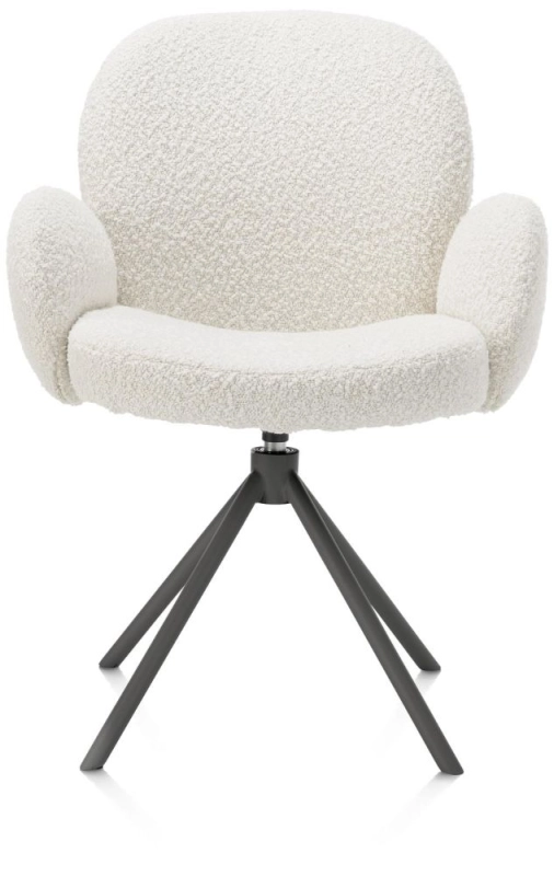 Een wolk van een armstoel, dat is deze aaibare armstoel JAXON uit de collectie van XOOON. De armstoel is geliefd vanwege zijn grove, zachte blouclé stof Brioni waardoor hij heerlijk zit. Hij pronkt op een graftietkleur frame, dat naar wens ook verkrijgbaar is in silk grey. Ideaal is dat JAXON 180 graden draaibaar is en een terugdraaifunctie heeft; dat maakt de armstoel naast stijlvol ook super praktisch. Ga je voor JAXON in deze mooie ivoorkleur of shop je hem in lever- of kiezelkleur? Mix en match de drie kleuren voor een speels effect. De stoel is naar wens ook verkrijgbaar zonder armleuningen.