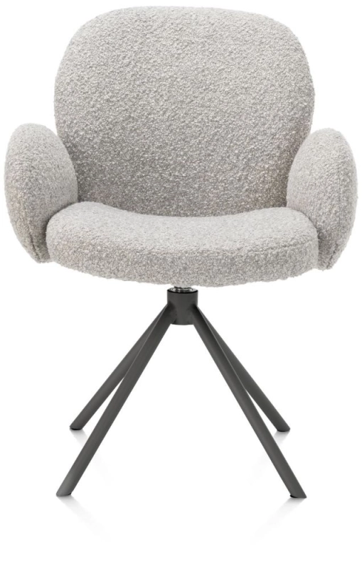 Is het geen plaatje, deze wolk van een armstoel uit de JAXON serie van XOOON? Je shopt de armstoel in drie kleuren, waaronder deze variant in de kleur kiezel. Dankzij de grove bouclé stof Brioni is JAXON heerlijk aaibaar. Samen met de andere kleuren staat hij lekker speels aan je eetkamertafel. De 180 graden draaimogelijkheid met terugdraaifunctie zorgt ervoor dat je letterlijk alle kanten op kunt met deze armstoel. Het onderstel van JAXON is een centrale 4-poot in de kleur grafiet. Je shopt hem naar wens ook als eetkamerstoel zonder armleuningen.