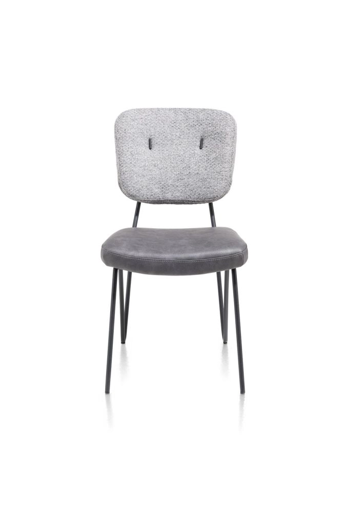 June, eetkamerstoel - frame off black + pocketvering - combi stof Pala (zit) en stof Cleo (rug) - Lichtgrijs
