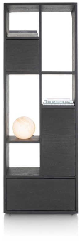 Lugana, roomdivider 76 cm - 2-deuren + 1-lade + 5-niches - Onyx