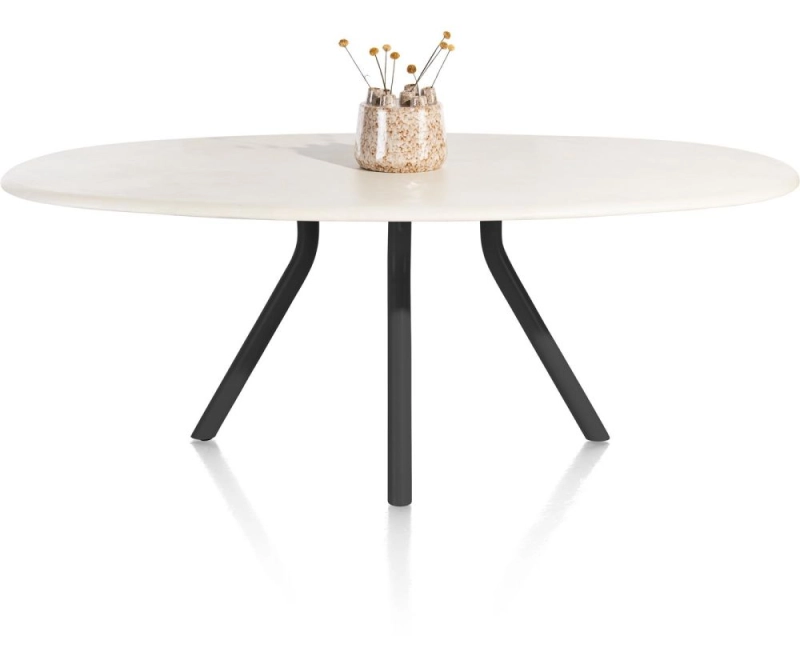 Ben je op zoek naar een tafel waarmee je een statement maakt in je interieur? Kijk dan eens naar eetkamertafel LUND van XOOON. LUND is een tafel met een elegante vorm en een stoere uitstraling dankzij de stone-skin afwerking. Hij heeft een afmeting van 210 x 120 cm. De definitieve look van de tafel bepaal je zelf. Je shopt eetkamertafel LUND namelijk met een ovaal of rond blad. Het onderstel is naast de kleur off black ook verkrijgbaar in deze lichte nebbia tint. Hoe ziet jouw ideale LUND tafel er uit?