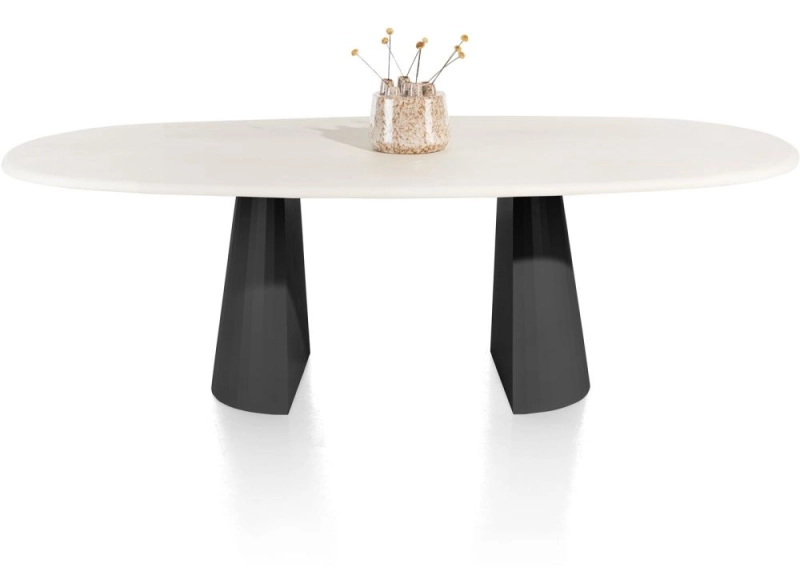 Lund, eetkamertafel ovaal 240 x 120 cm. - stone-skin - cone poot - Zwart nebbia