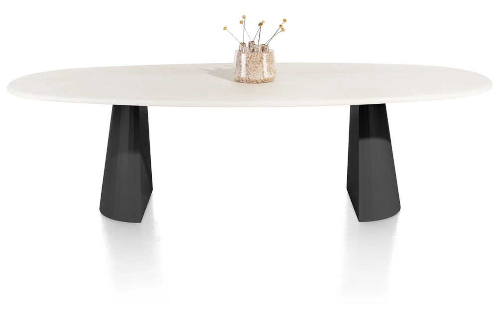 Lund, eetkamertafel ovaal 270 x 120 cm. - stone-skin - cone poot - Zwart nebbia
