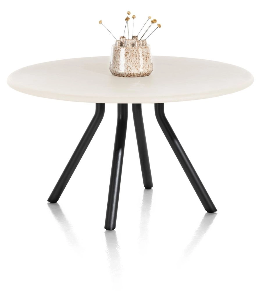 Lund, eetkamertafel rond 140 cm. - stone-skin - centrale poot kort - Zwart nebbia
