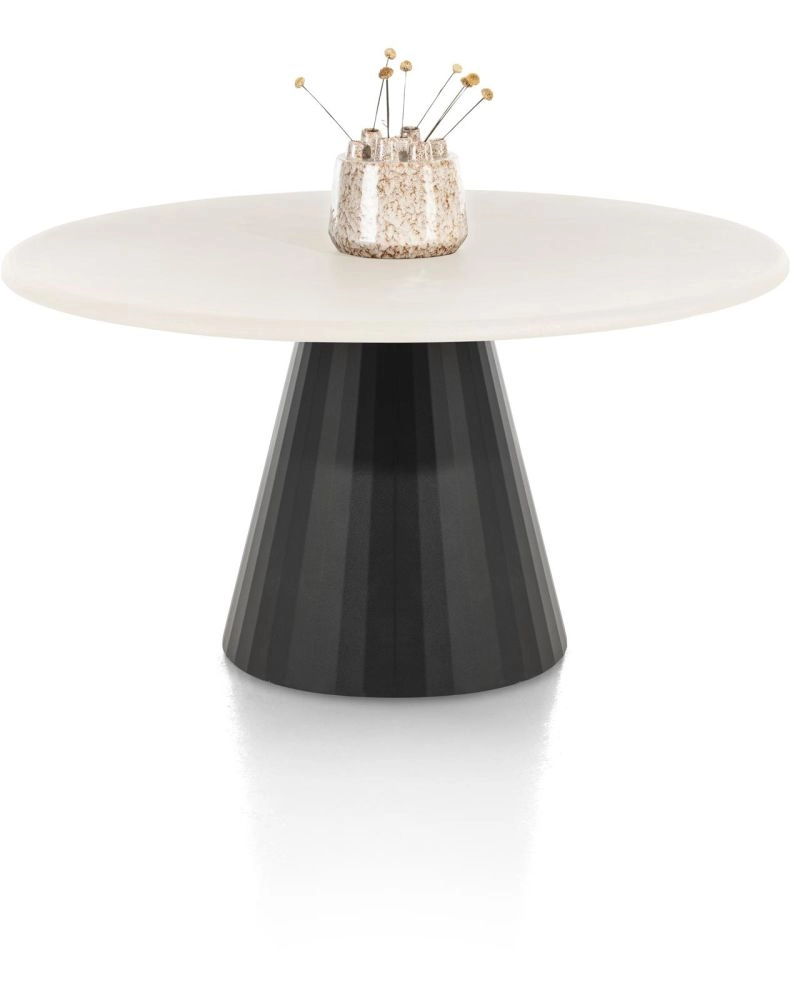 Lund, eetkamertafel rond 140 cm. - stone-skin - cone poot - Zwart nebbia
