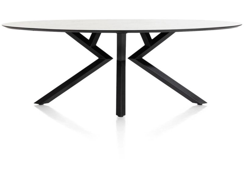 Bepaal zelf de look van jouw unieke designtafel met eetkamertafel MASURA! Met zijn ruime afmeting van 220 x 105 cm en prachtig ellips vormige HPL tafelblad, is MASURA een ware eyecatcher voor je interieur. De tafel staat op een zwart metalen onderstel en het blad is verkrijgbaar in keramiek look antraciet of roest, marmerlook wit en eiken naturel. Voor welke look kies jij?