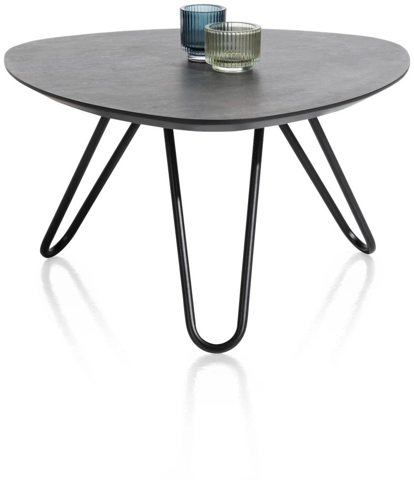 Naast de lage salontafel MASURA hebben we ook een hoger exemplaar in onze collectie. Tip: de hoge en lage variant zijn ook erg leuk met elkaar te combineren! Het HPL blad heeft een stijlvolle organische vorm en is verkrijgbaar in 4 kleuren (keramiek look antraciet of roest, witte marmerlook of naturel eiken). Salontafel MASURA staat op een strak zwart metalen onderstel.