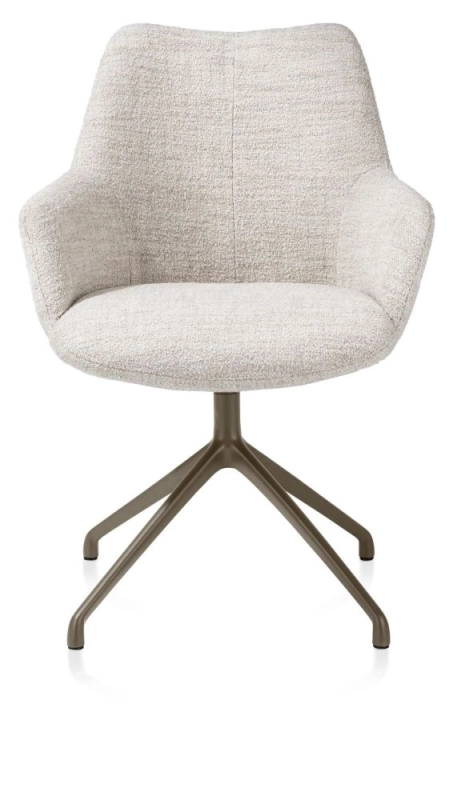 Mats, armstoel aluminium frame 4-poots - draaibaar steelbrown - stof Luton - Creme