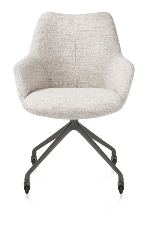 Ben je op zoek naar een stijlvolle armstoel op wielen? Kijk dan eens naar deze crèmekleur armstoel MATS in stof Luton. MATS heeft een grafietkleurige aluminium kruispoot met wielen. Naar wens is hij er ook met een frame zonder wielen verkrijgbaar dat 360° draaibaar is. Laat je verrassen door de andere varianten waarin armstoel MATS verkrijgbaar is.