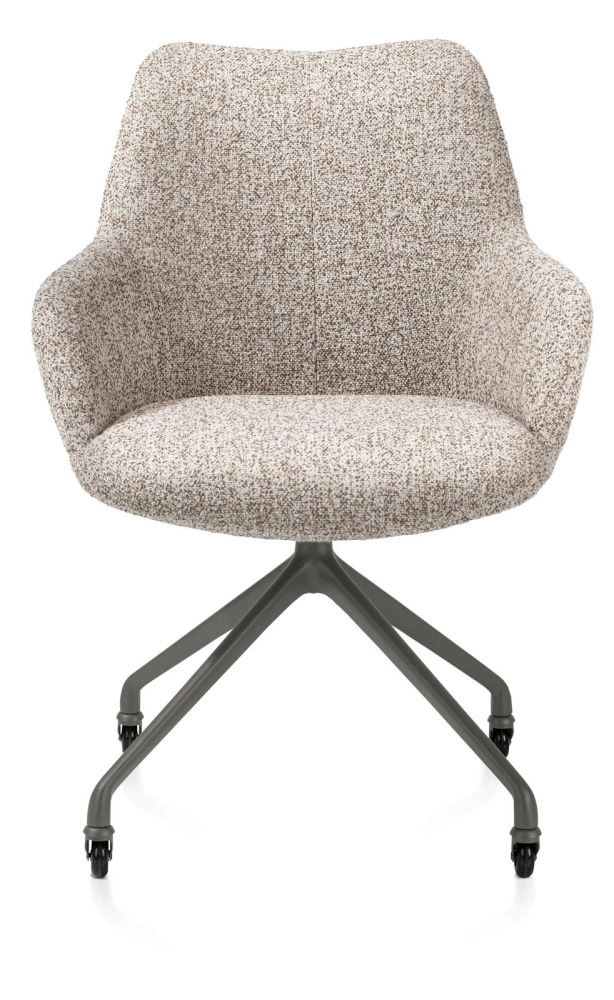 Mats, armstoel aluminium frame wielen grafiet - stof Luton crème - koper