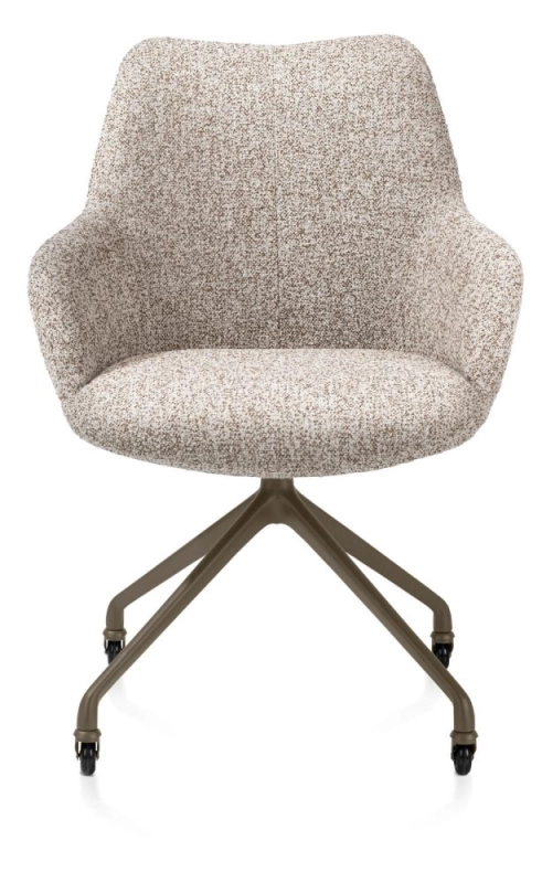 Mats, armstoel aluminium frame wielen steelbrown - stof Luton - koper