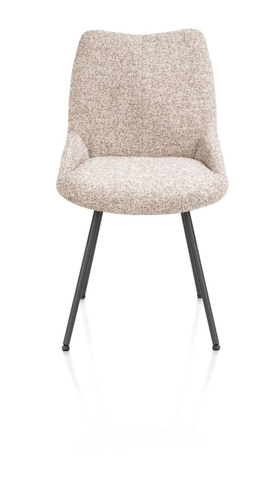 Deze armstoel MATS combineert een metalen 4-poot onderstel in de kleur grafiet met een zitting in de stof Luton in de kleur koper. De bekleding is zacht en aaibaar en heeft een subtiele bouclé look. De armleuningen maken deze eetkamerstoel comfortabel in gebruik.