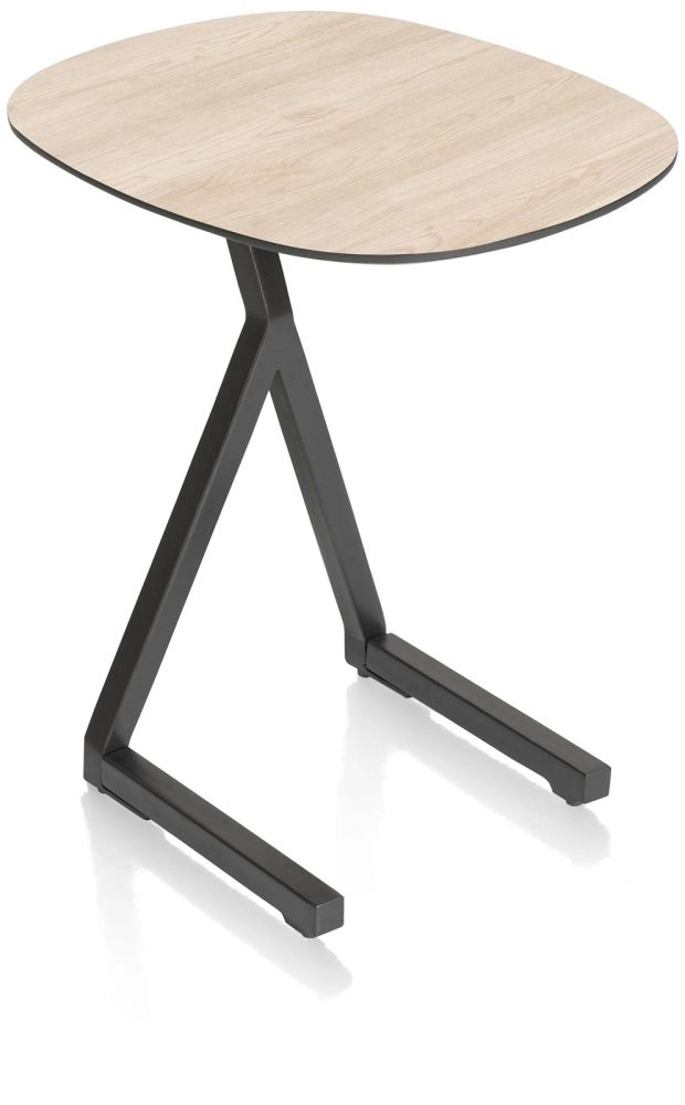 Een musthave in een digitaal huishouden: deze laptoptafel MINATO pak je er gemakkelijk even bij om een mail te typen of vanaf de bank te werken. Het tafeltje heeft een speelse vorm en een blad met naturel eiken look. Hij staat op een metalen onderstel in de kleur grafiet. Het blad van MINATO is gemaakt van hoogwaardig MDF en heeft een afwerking in Primo Laminato (HPL).