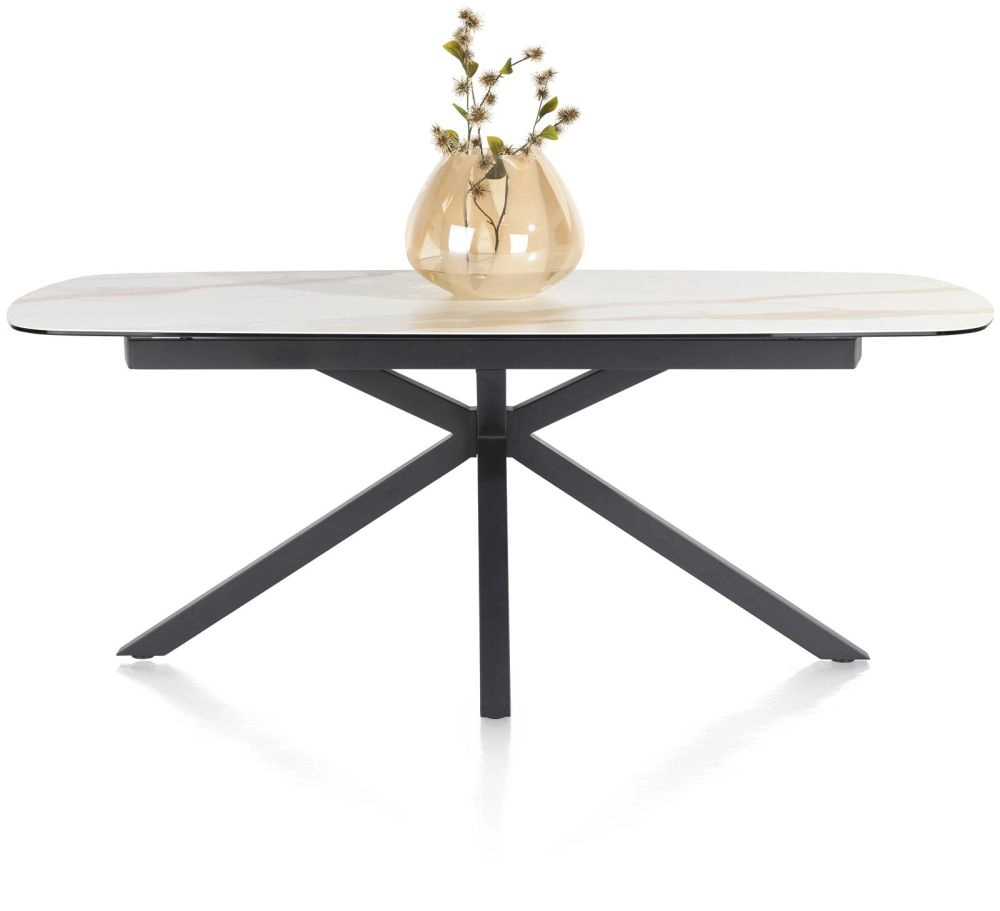 Samen eten wordt een feestje aan eetkamertafel MONTELLO: een chique tafel van 200 cm lang met een blad van keramiek op glas met marmerlook. Ga je voor deze witte variant of kies je voor de zwarte look? MONTELLO mag hoe dan ook gezien worden! De centrale poot is uitgevoerd in zwart metaal.