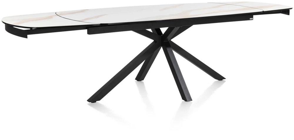 Ideaal voor onverwachte eters: een ovale tafel die ook nog eens uitschuifbaar is! Uitschuiftafel MONTELLO is ontzettend stijlvol én praktisch tegelijk. Het witte marmerlook blad van keramiek op glas heeft een chique uitstraling en staat op een zwart metalen poot. Deze uitschuiftafel is met 50 cm uit te schuiven aan weerszijden tot 300 cm en is er ook met zwart blad!