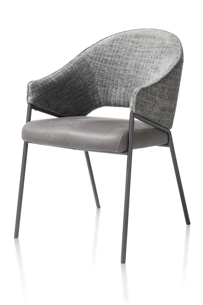 Armstoel NOLAN in antraciet geeft je eethoek een industriële en tegelijk stijlvolle touch. De stoel is prachtig bekleed met microleder Taurus op de zitting en de luxe stof Wave op de rug. Wave is een chenille stof van 100% polyester met een duidelijk zichtbaar ruitpatroon. De stof is heerlijk zacht en heeft een mooie glans. Armstoel NOLAN heeft een zwart metalen onderstel. Je shopt NOLAN ook in crèmekleur, ice en olijf. Combineer erop los voor een speels effect!