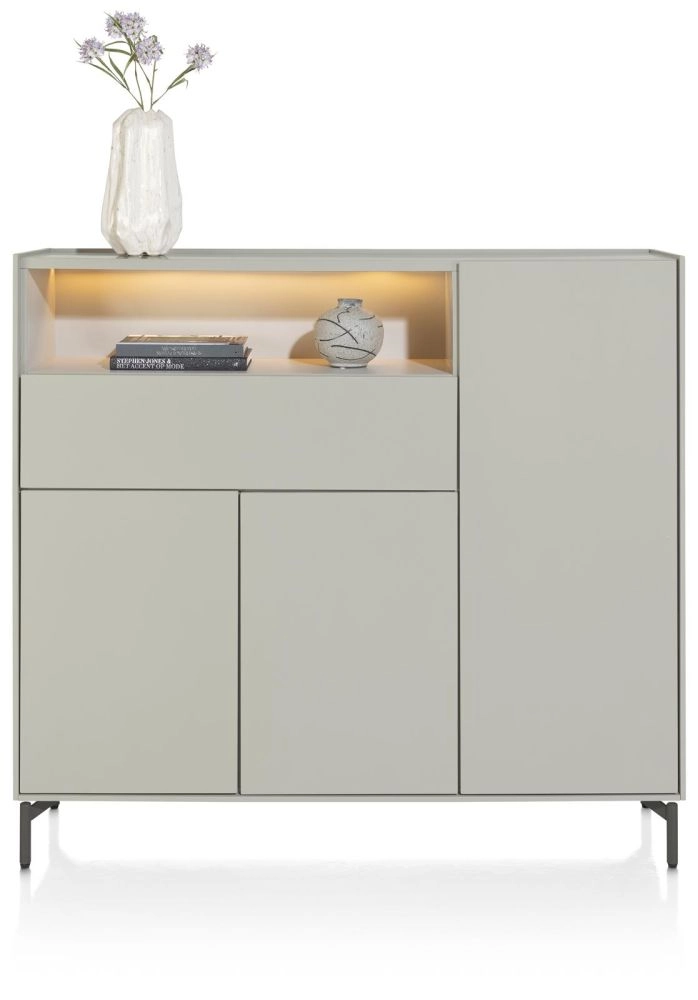 Noon, dressette 148 cm - 3-deuren + 1-lade + 1-niche (+ LED) - geheel silk grey