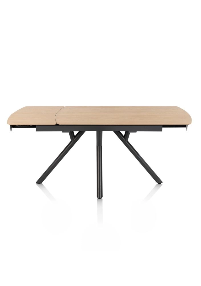 Deze NOVELLO uitschuiftafel combineert een compacte maat van 140 x 100 cm met een uitschuiflengte van 50 cm. Hiermee is de tafel zeer geschikt voor kleinere ruimtes. Het luxe uitschuifsysteem zorgt ervoor dat het blad aan beide zijden uitschuift, zodat het metalen onderstel onderstel altijd in het midden van de tafel blijft staan. Het gelakte eikenfineer in de kleur naturel benadrukt de natuurlijke strcutuur van het hout. Houd je van een warme look ? Kies dan voor een blad in eikenfineer met de kleur clay.
