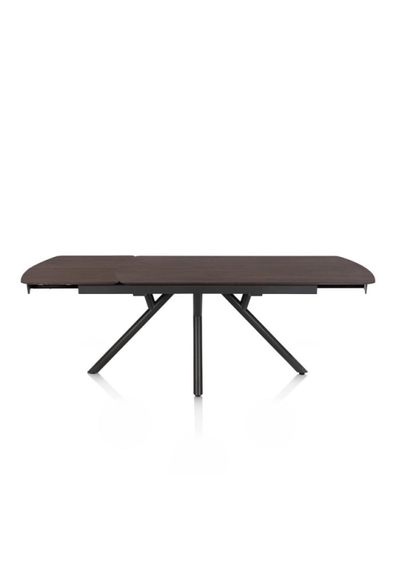 Deze NOVELLO uitschuiftafel heeft een lengte van 170 x 100 cm die met 60 cm te verlengen is. De tafel is uitgerust met ht luxe butterfly-uitschuifsysteem in het midden van de tafel. Bij het uitschuiven van de tafel schuift het hele blad - zowel links als rechts - mee. Dit zorgt ervoor dat het onderstel altijd onderstel altijd centraal onder het tafelblad b;ijft staan Deze NOVELLO uitschuiftafel heeft een blad in gelakt eikenfineer in de kleur clay en staat op een metalen onderstel in de kleur grafiet. Je kunt ook kiezen voor een uitvoering in de kleur eiken naturel.