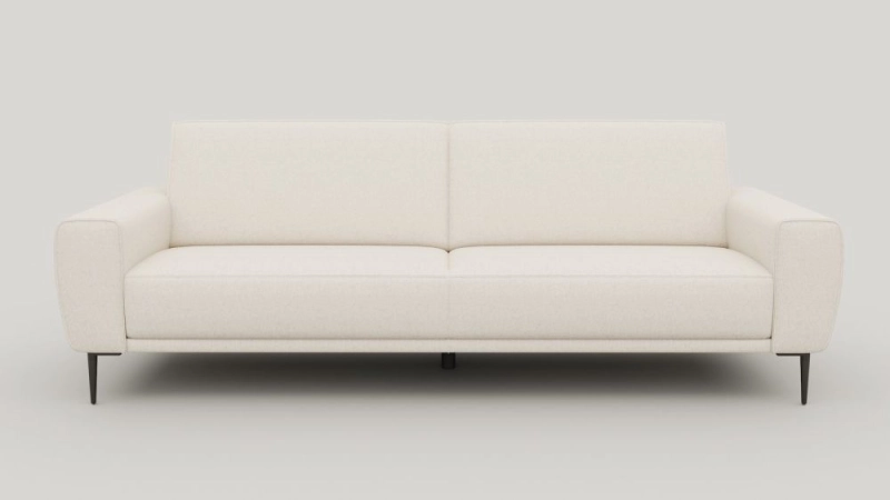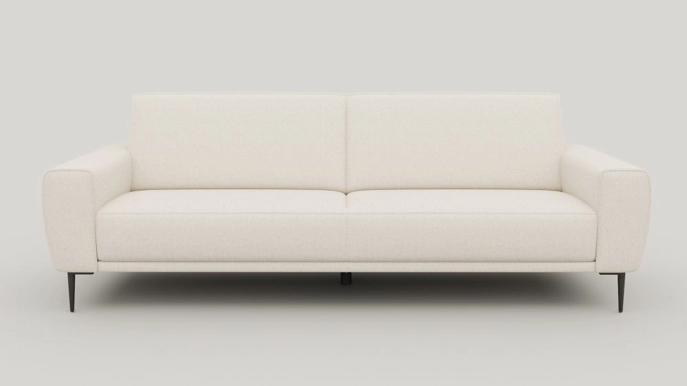 Op zoek naar een ruimte designsofa met een minimalistische uitstraling? Dan is de PUGLIA 3,5-zits in stof Vada crème een goede optie. De royale afmetingen, de heldere vormen en het elegante metalen designframe maken van deze sofa het stijlvolle middelpunt van je woonkamer. De platgeweven Vada-stof voelt zacht aan en is bestand tegen regelmatig woongebruik. De standaard pocketvering zorgt voor comfortabele ondersteuning.