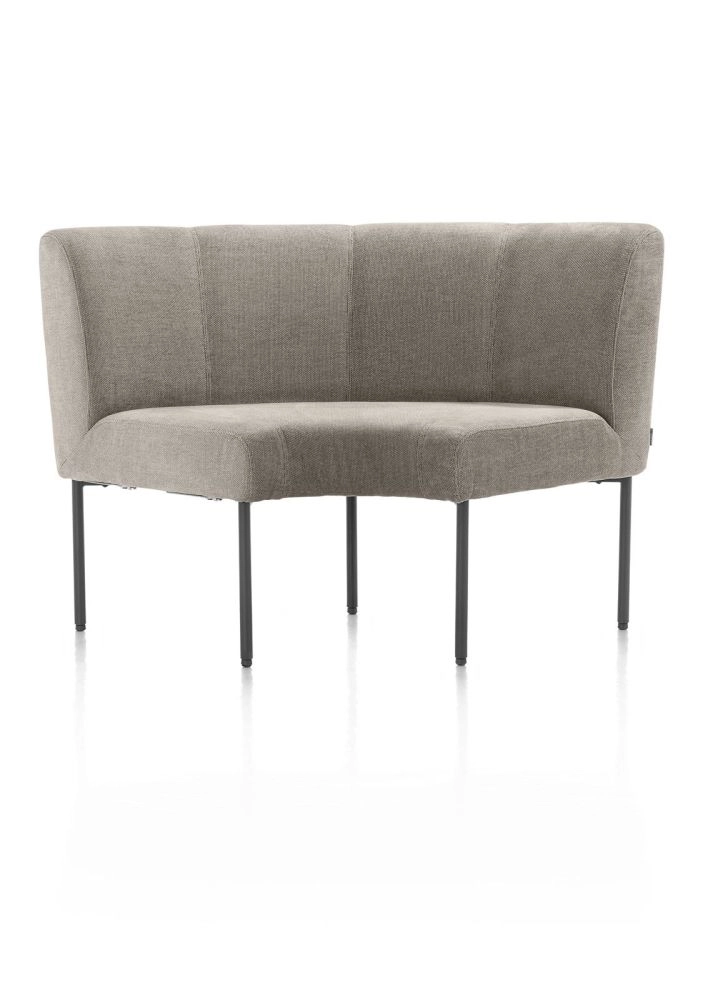 Verleng jouw REVERSO eetkamerbank met deze afgeronde hoek waardoor hij nog meer plek biedt aan je eetkamertafel. Je personaliseert jouw REVERSO zowel qua opstelling geheel naar eigen wens. Deze hoek REVERSO is koppelbaar en uit te breiden met de andere elementen uit deze serie. De prachtige chenillestof Livigno in bruin komt in elk interieur mooi tot zijn recht. Het ranke onderstel is gemaakt van metaal in de kleur grafiet. Eetkamerbank REVERSO is rondom gestoffeerd en daardoor ook erg mooi vrij in de ruimte te plaatsen.