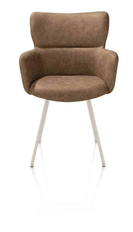 De SAGE armstoel in de kleur desert is een elegante en comfortabele keuze voor elke eethoek. De stoel is bekleed met stof Oregon, een zachte microvezelstof met een stoere uitstraling. De afgeronde rugleuning, geïntegreerde armleuningen en royale zitting zorgen voor een ontspannen zitervaring, ideaal voor lange avonden tafelen of gezellig natafelen. Het onderstel met vier slanke poten in crèmekleur maakt de stoel extra stijlvol en geeft een luchtige, moderne basis die mooi combineert met de warme tint van de bekleding. Armstoel SAGE is verkrijgbaar in verschillende uitvoeringen, zodat je eenvoudig jouw perfecte set samenstelt.