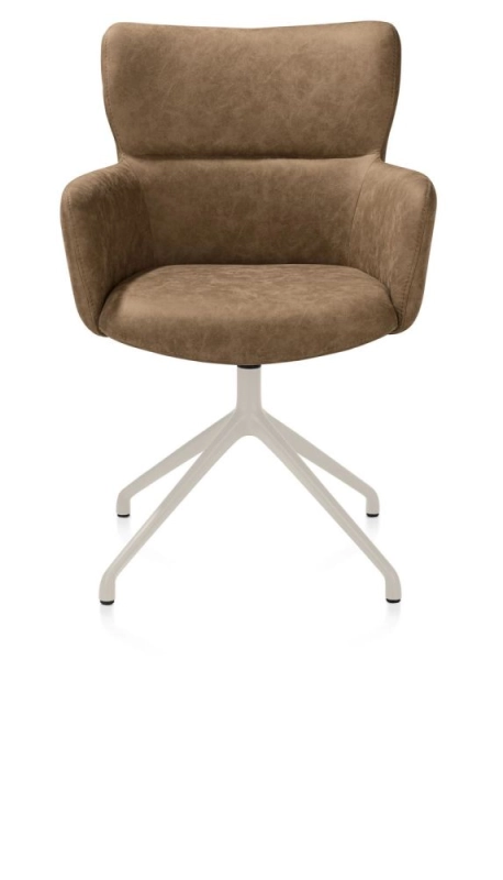 De SAGE armstoel in desertkleur brengt een warme, natuurlijke sfeer aan tafel. De stoel is uitgevoerd in stof Oregon, zachte microvezelstof met een stoere uitstraling. De afgeronde rugleuning, geïntegreerde armleuningen en royale zitting maken de stoel bijzonder comfortabel. Het draaibare onderstel in crèmekleur voegt een luchtig en eigentijds accent toe, terwijl het praktische gebruiksgemak perfect is voor dagelijks tafelen. Deze variant combineert comfort, stijl en flexibiliteit in één. Armstoel SAGE is verkrijgbaar in verschillende kleuren en uitvoeringen, zodat je altijd de perfecte match vindt voor jouw interieur.