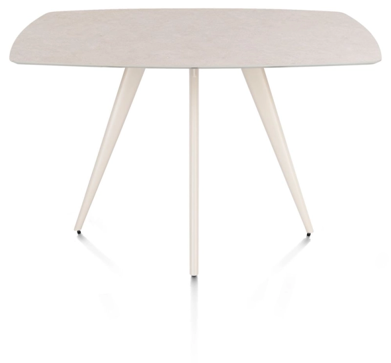 Deze SALUTI bartafel heeft een ovaal tafelblad van 150 x 105 cm en staat op een metalen 4-poot onderstel in de kleur crème. De tafel heeft een hoogte van 92 cm en is daarmee geschikt voor de plaatsing van verschillende barstoelen uit de XOOON-collectie. Het tafelblad is gemaakt van hoogwaardig MDF met een Primo Laminato (HPL) afwerking de kleur in steenlook light sand. Dit materiaal is krasvast, bestand tegen hoge temperaturen en eenvoudig te onderhouden. Dankzij de ovale vorm doorbreek je rechte lijnen in het interieur en schuif je gemakkelijk extra stoelen aan.