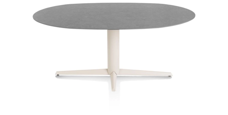 Saluti, eetkamertafel ellips 180 X 105 cm. - centrale teenpoot - creme - Antraciet