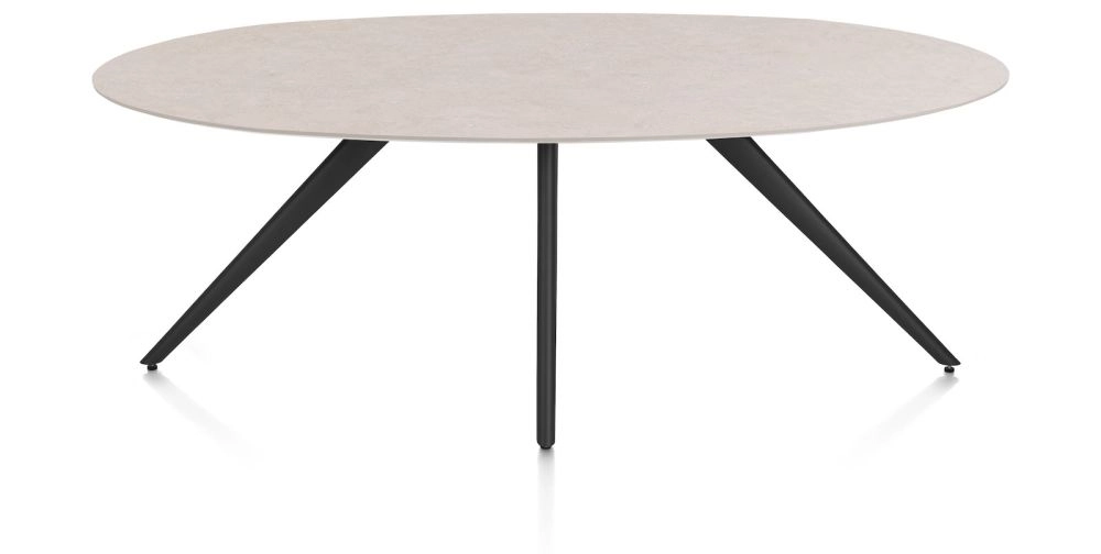 Saluti, eetkamertafel ellips 210 x 105 cm. - 4-pootjes - rough off black - Light sand