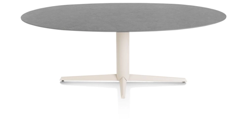 Saluti, eetkamertafel ellips 210 X 105 cm. - centrale teenpoot - creme - Antraciet