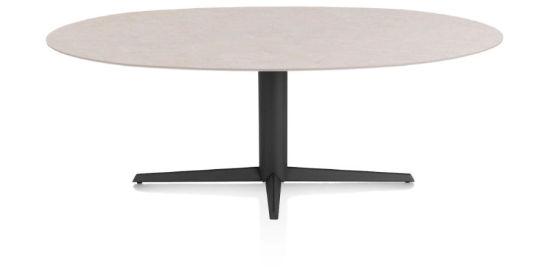 Saluti, eetkamertafel ellips 210 X 105 cm. - centrale teenpoot - rough off black - Light sand
