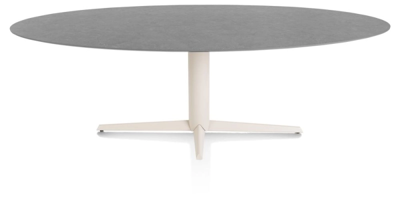 Saluti, eetkamertafel ellips 240 X 110 cm. - centrale teenpoot - creme - Antraciet