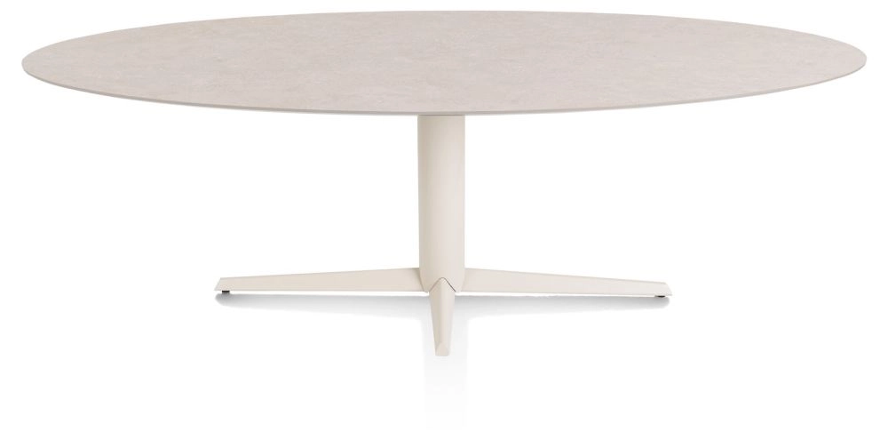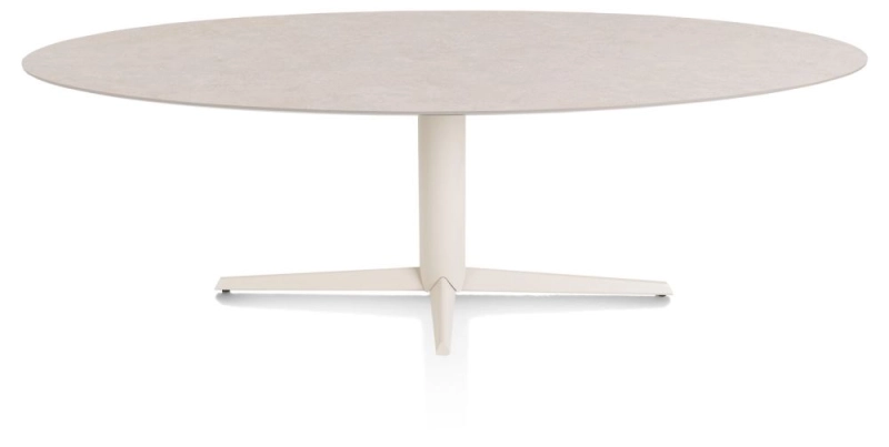 Saluti, eetkamertafel ellips 240 X 110 cm. - centrale teenpoot - creme - Light sand