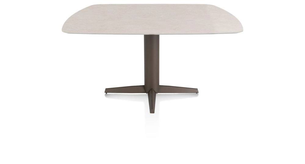 Saluti, eetkamertafel ovaal 150 X 105 cm. - centrale teenpoot - steelbrown - Light sand