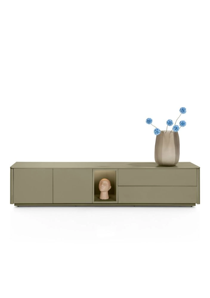 Trentino, Lowboard 210 cm. - 2-deuren + 2-laden + 1-niche - mdf gelakt - Olijf