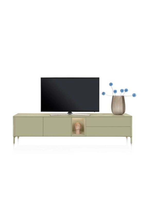 Trentino, Lowboard 240 cm. - 2-deuren + 2-laden + 1-niche - mdf gelakt - Olijf