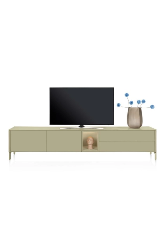 Trentino, Lowboard 270 cm. - 2-deuren + 2-laden + 1-niche - mdf gelakt - Olijf